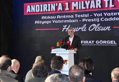 Programda konuşan Büyükşehir Belediye Başkanı Fırat Görgel, “Devlet millet el ele vererek şehrimizi, ilçemizi her alanda ayağa kaldırmak için kararlı bir şekilde yol alıyoruz. Büyükşehir Belediyesi olarak, 11 ilçemizde canla başla çalışıyoruz ve Andırın’da da sağlam temeller atmayı önceledik. Çünkü güçlü şehirler, güçlü altyapıyla yükselir. Bu kapsamda; Andırın Atıksu Arıtma Tesisimizi tamamladık. Arıtma tesisimiz ile içmesuyu ve kanalizasyon yatırımları, Akifiye İçmesuyu İsale Hattı çalışmaları toplam 530 Milyon TL maliyetle hayata geçirildi. Son teknoloji sistemlerle kurulu bir arıtma tesisi. İlçemize, hemşehrilerime hayırlı olsun” dedi.