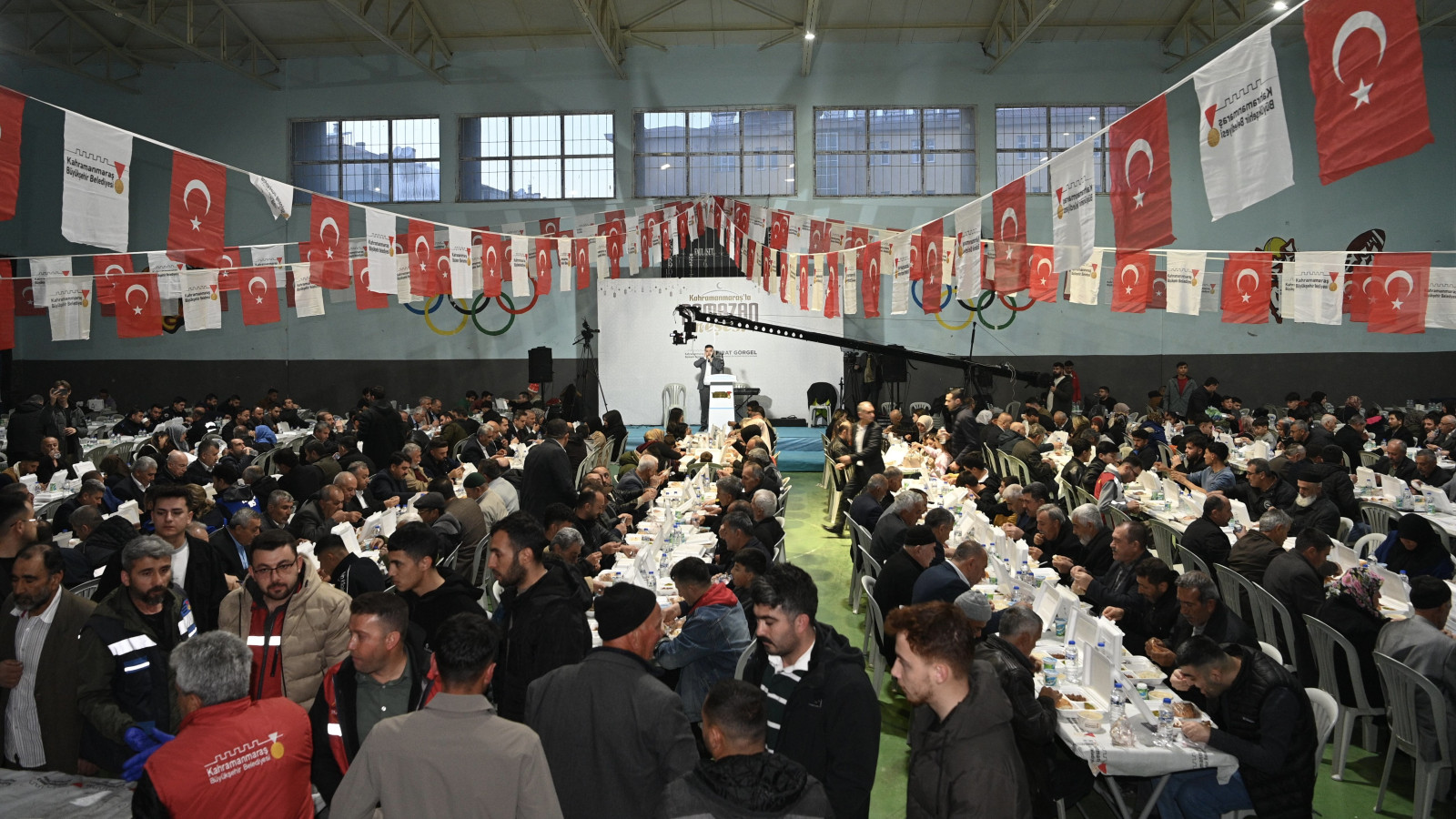 Kahramanmaraş Büyükşehir Belediyesinin Ramazan ayının paylaşma ve dayanışma iklimini tüm ilçelere yaymak amacıyla hayata geçirdiği “İlçemde İftar Var” programı, bu kez Ekinözü’nde vatandaşları aynı sofrada buluşturdu. Ekinözü Spor Salonu’nda gerçekleştirilen iftar programı her yaştan vatandaşın yoğun ilgisi ile karşılandı. Salonun tamamen dolduğu akşamda, yüzlerce kişi aynı sofrada oruç açarak birlik ve beraberliğin en güzel örneklerinden birini sergiledi. İftar organizasyonu, Ramazan’ın bereketini paylaşmanın huzurunu ve dayanışma duygusunun ilçe genelinde güçlü bir şekilde hissettirdi. İftar programına; AK Parti Kahramanmaraş Milletvekili Mevlüt Kurt, Büyükşehir Belediye Başkanı Fırat Görgel, Ekinözü Kaymakamı Muhammed Huzeyfe Onur, Ak Parti İl Başkan Yardımcısı Ali Köfte, MHP İl Başkanı Mansur Metehan, Ekinözü Belediye Başkanı Harun Vicdan ve ilçe protokolü de katıldı.