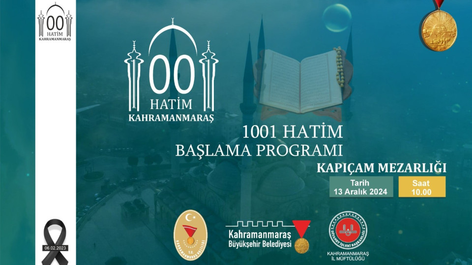 Büyükşehir Belediyesi, Valilik ve İl Müftülüğü iş birliğiyle, 6 Şubat depremlerinde hayatını kaybeden vatandaşların anısına “1001 Hatim” programı başlatıldı. Vatandaşlar, 6 Şubat 2025 tarihine kadar okudukları hatimleri cami veya Kur’an kursu hocalarına ya da ilçe müftülüklerine bildirerek programa destek olabilecekler.