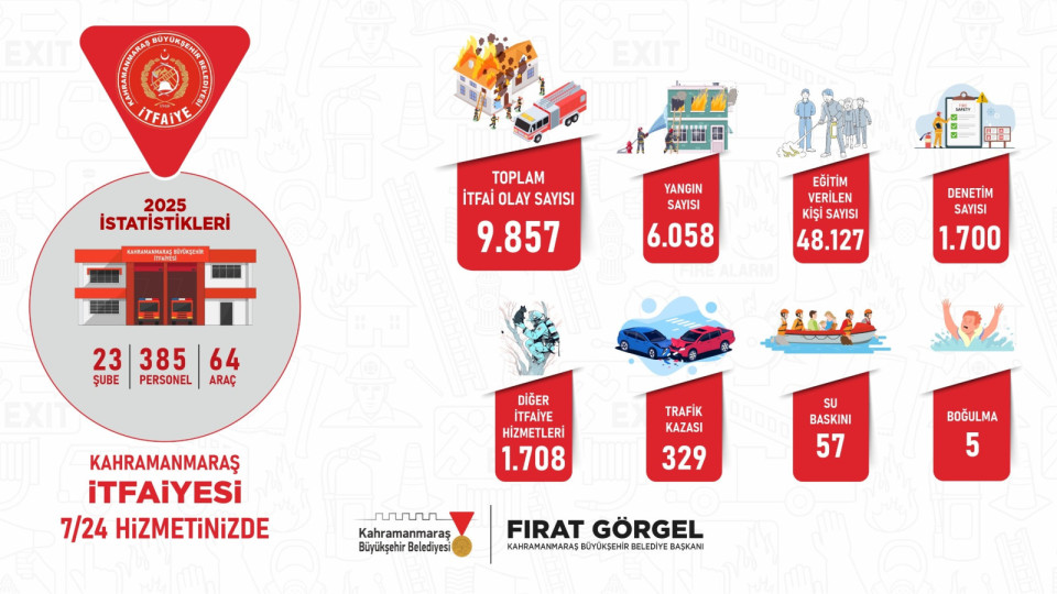 Büyükşehir Belediyesi İtfaiyesi, 2025 yılında toplam 16 bin 306 olaya hızlı ve etkin bir şekilde müdahale etti. Olay yerine anında ulaşan ekipler, vatandaşların can ve mal güvenliğini koruma noktasında örnek bir performans sergiledi.