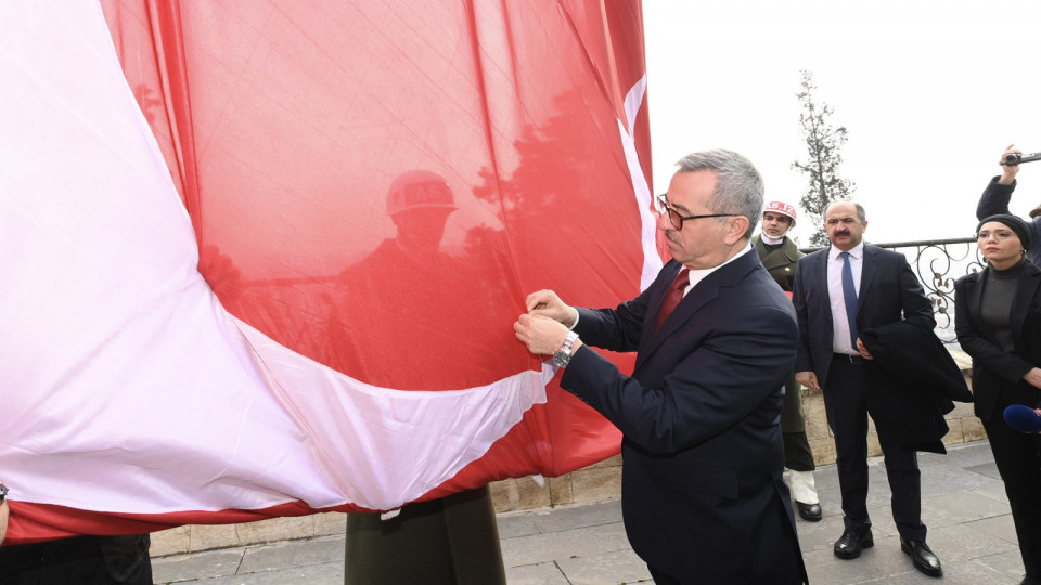 Kurtuluş Günü etkinlikleri çerçevesinde şehrin nişanesi olan kırmızı şeritli İstiklal Madalyası, Büyükşehir Belediye Başkanı Hayrettin Güngör tarafından Türk Bayrağı’na takılarak göndere çekildi.