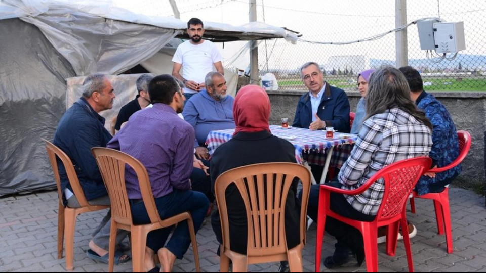 Eyüp Sultan Mahallesi’nde kurulan geçici konaklama merkezinde vatandaşlarla bir araya gelen Başkan Güngör, “Çok zor bir süreçten geçiyoruz ancak devlet millet el birliğiyle yaralarımızı sarıyor ve şehrimizi hızla yeniden imar etmeye çalışıyoruz” dedi.