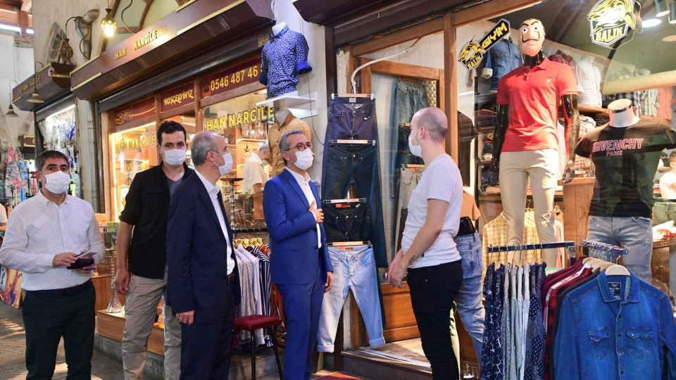 Kahramanmaraş Büyükşehir Belediye Başkanı Hayrettin Güngör beraberinde Dulkadiroğlu Belediye Başkanı Necati Okay ve meclis üyeleri ile birlikte Tarihi Kapalı Çarşı’da Ayakkabıcılar Çarşısı ve Bezirgan Çarşısı ile Taşhan esnaflarını ziyaret ederek bir süre sohbet etti.
