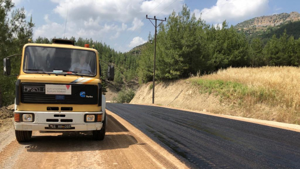 Kahramanmaraş Büyükşehir Belediyesi yol yapım ve onarım çalışmaları kapsamında Onikişubat İlçesi Topçalı Grup Yolunda astar atım çalışmalarına başladı.