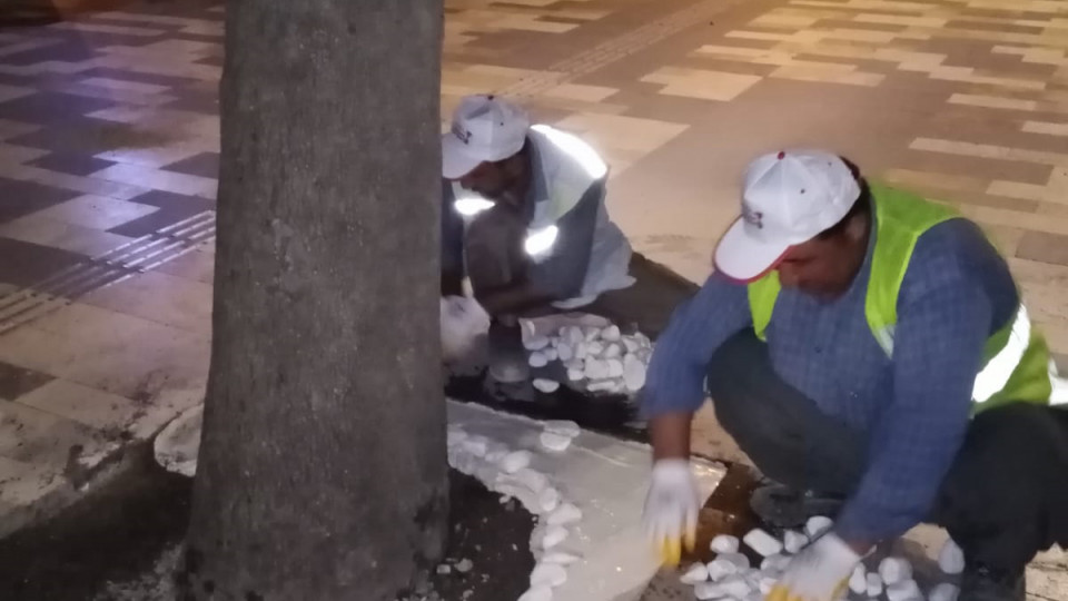 Yaz mevsiminin başladığı şu günlerde Büyükşehir Belediyesi meydanlarda bulanan ağaçların diplerini dolamit taşlarla süsleyerek güzel görünmesini sağlıyor.