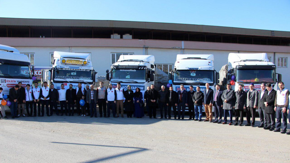 Büyükşehir Belediyesi koordinasyonunda Genç Ufuk Derneği, Hayrat İnsani Yardım, Verenel Derneği, İsar Derneği, Dulkadiroğlu İlçe Milli Eğitim Müdürlüğü ve Abdulhamithan Camii işbirliği ile toplanan 6 tır dolusu yardım İdlib’e gönderildi.