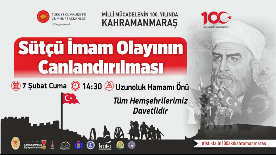Kahramanmaraş’ın düşman işgalinden kurtuluşunun 100. yılı dolayısıyla düzenlenen etkinlikler çerçevesinde Sütçü İmam Olayı, temsili olarak canlandırılacak.