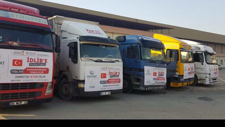 Kahramanmaraş Büyükşehir Belediyesi, Hayrat İnsani Yardım Derneği ve Kahramanmaraş İSAR Derneği işbirliğiyle başlatılan Ümmetin Yetimi İdlip Yardım Kampanyası kapsamında hazırlanan 3 tır gıda, 2 tır un, 1 tır soba ile 1 tır battaniye ve giyimden oluşan 7 adet insanî yardım tırı KAFUM Fuar alanından dualarla uğurlandı.
