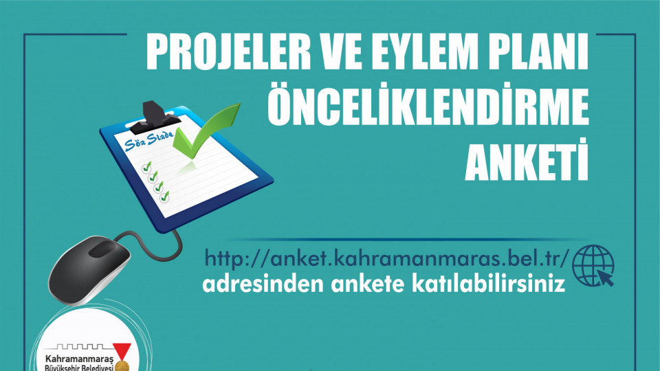 Büyükşehir Belediyesi 2019 – 2024 Projeler ve Eylem Planı anketi yayınlandı. 12 başlık altında hazırlanan 174 proje; vatandaşların katılımıyla önceliklendirilecek ve yol haritası oluşturulacak.