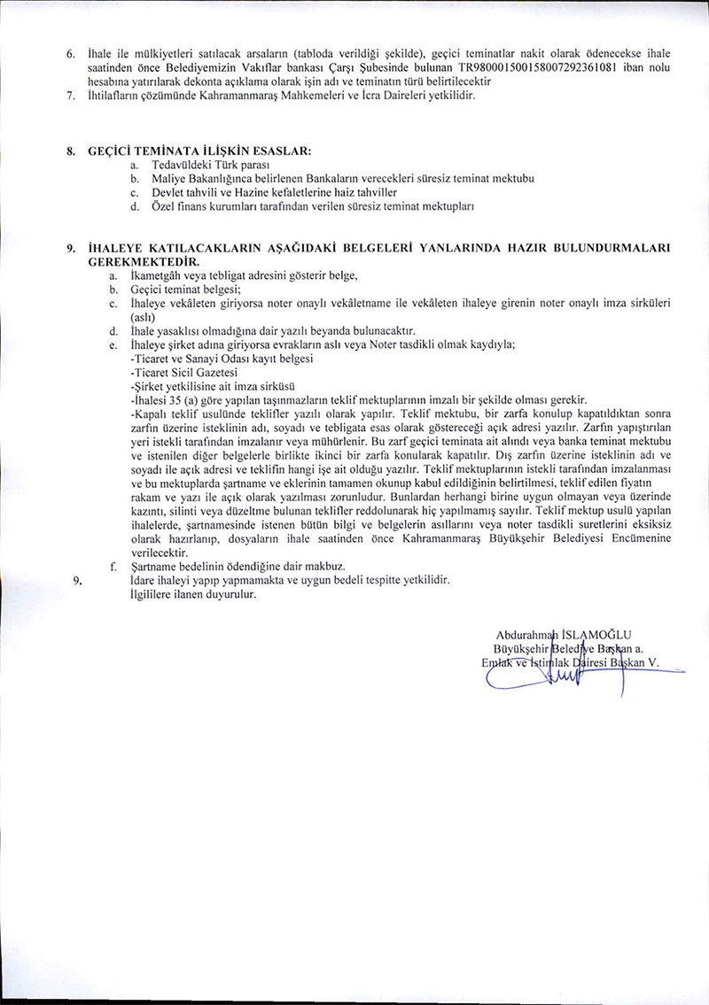 KAHRAMANMARAŞ BÜYÜKŞEHİR BELEDİYESİ İHALE SALONU