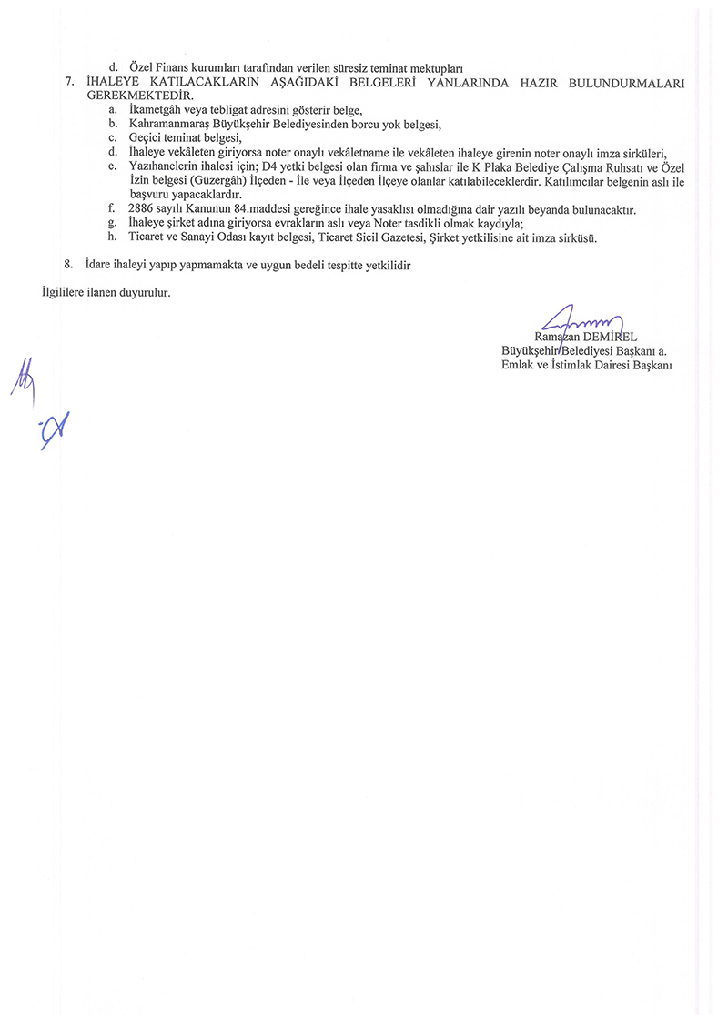 KAHRAMANMARAŞ BÜYÜKŞEHİR BELEDİYESİ İHALE SALONU