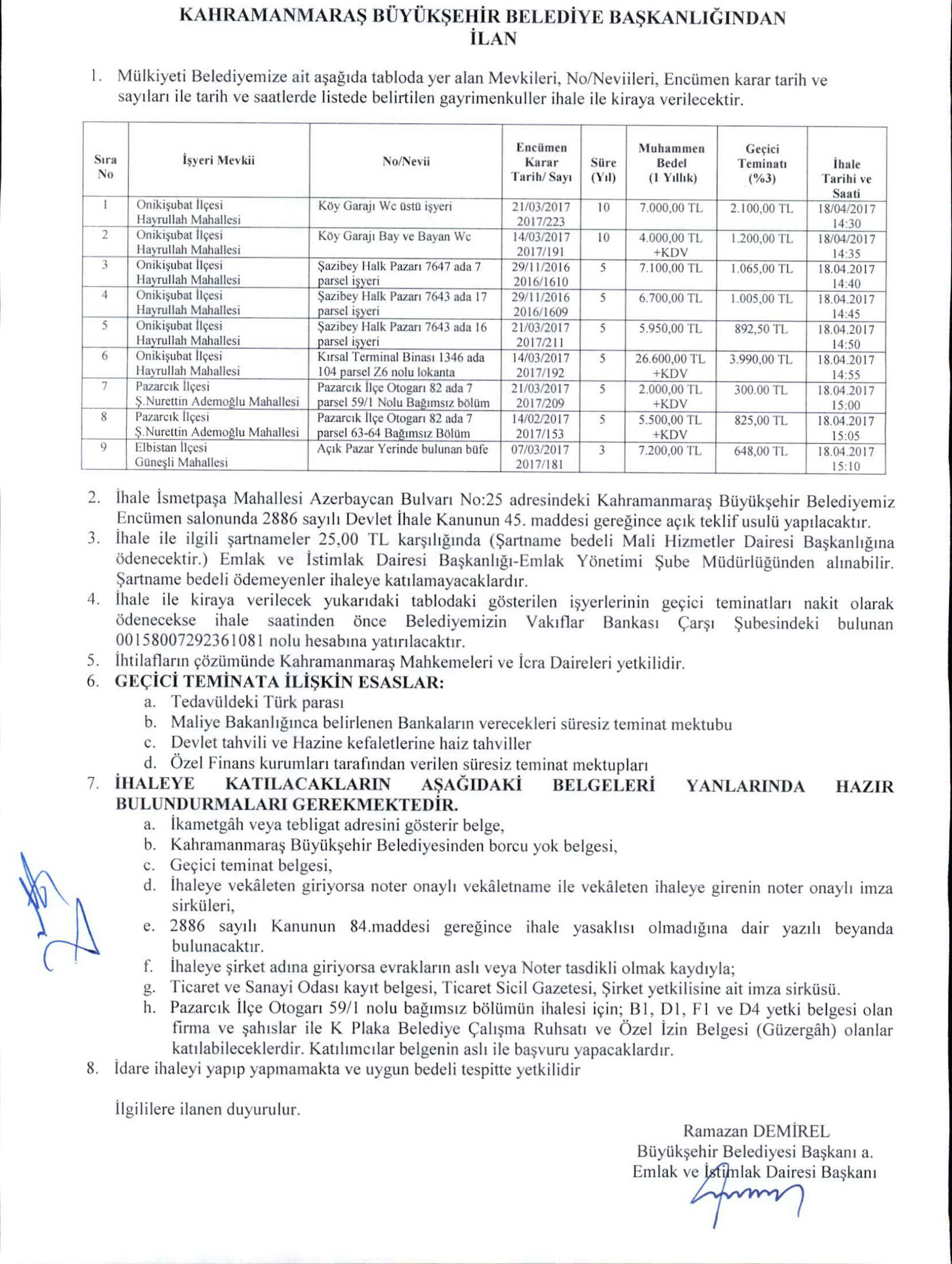 KAHRAMANMARAŞ BÜYÜKŞEHİR BELEDİYESİ İHALE SALONU