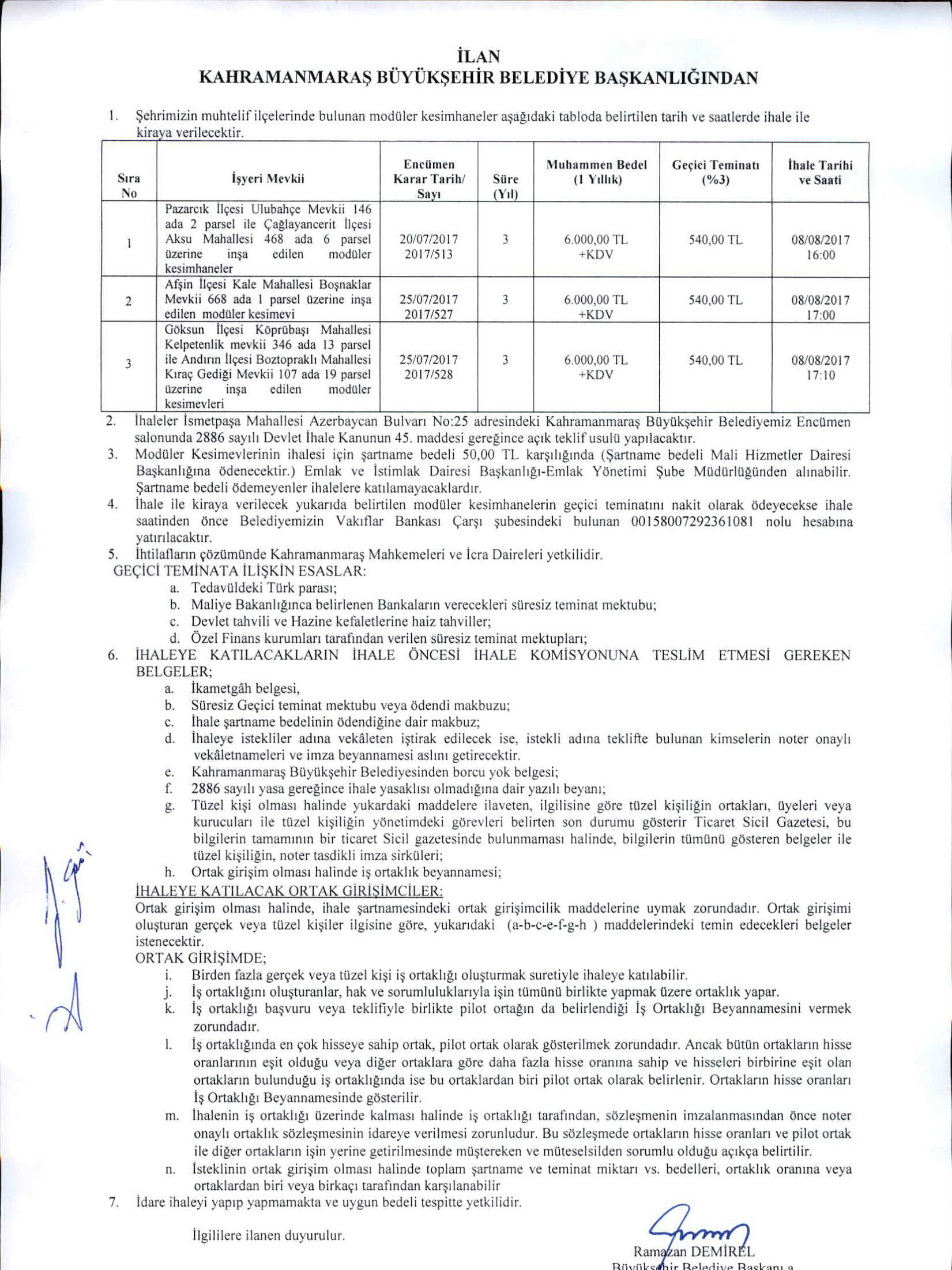 KAHRAMANMARAŞ BÜYÜKŞEHİR BELEDİYESİ İHALE SALONU