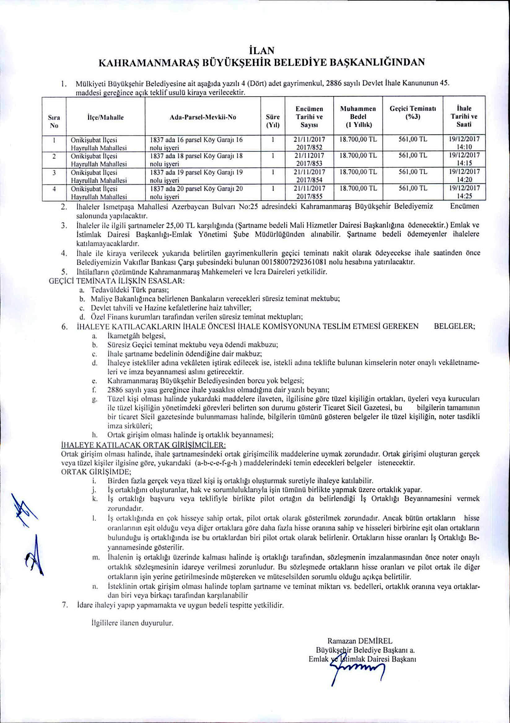 KAHRAMANMARAŞ BÜYÜKŞEHİR BELEDİYESİ İHALE SALONU