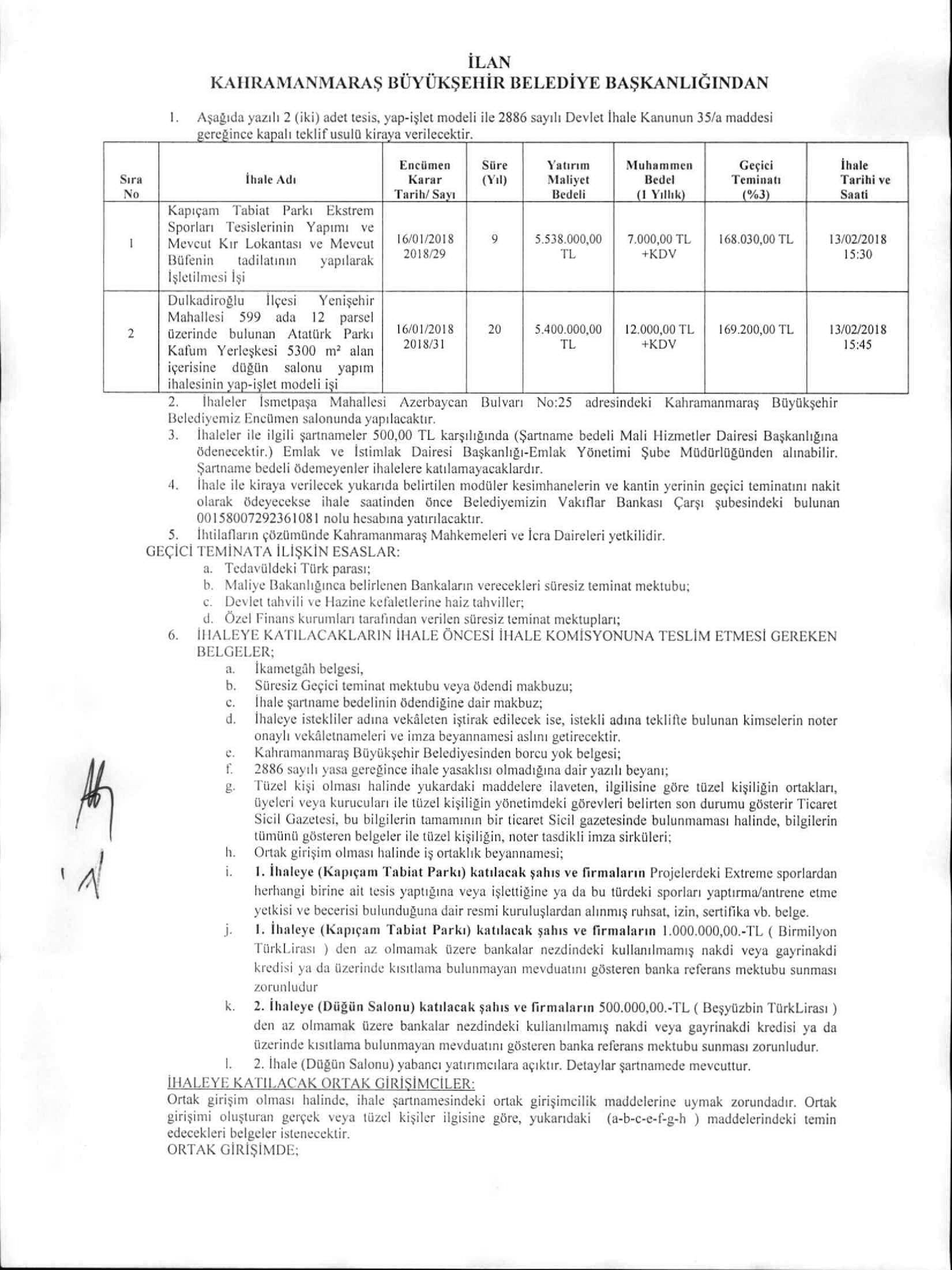 KAHRAMANMARAŞ BÜYÜKŞEHİR BELEDİYESİ İHALE SALONU