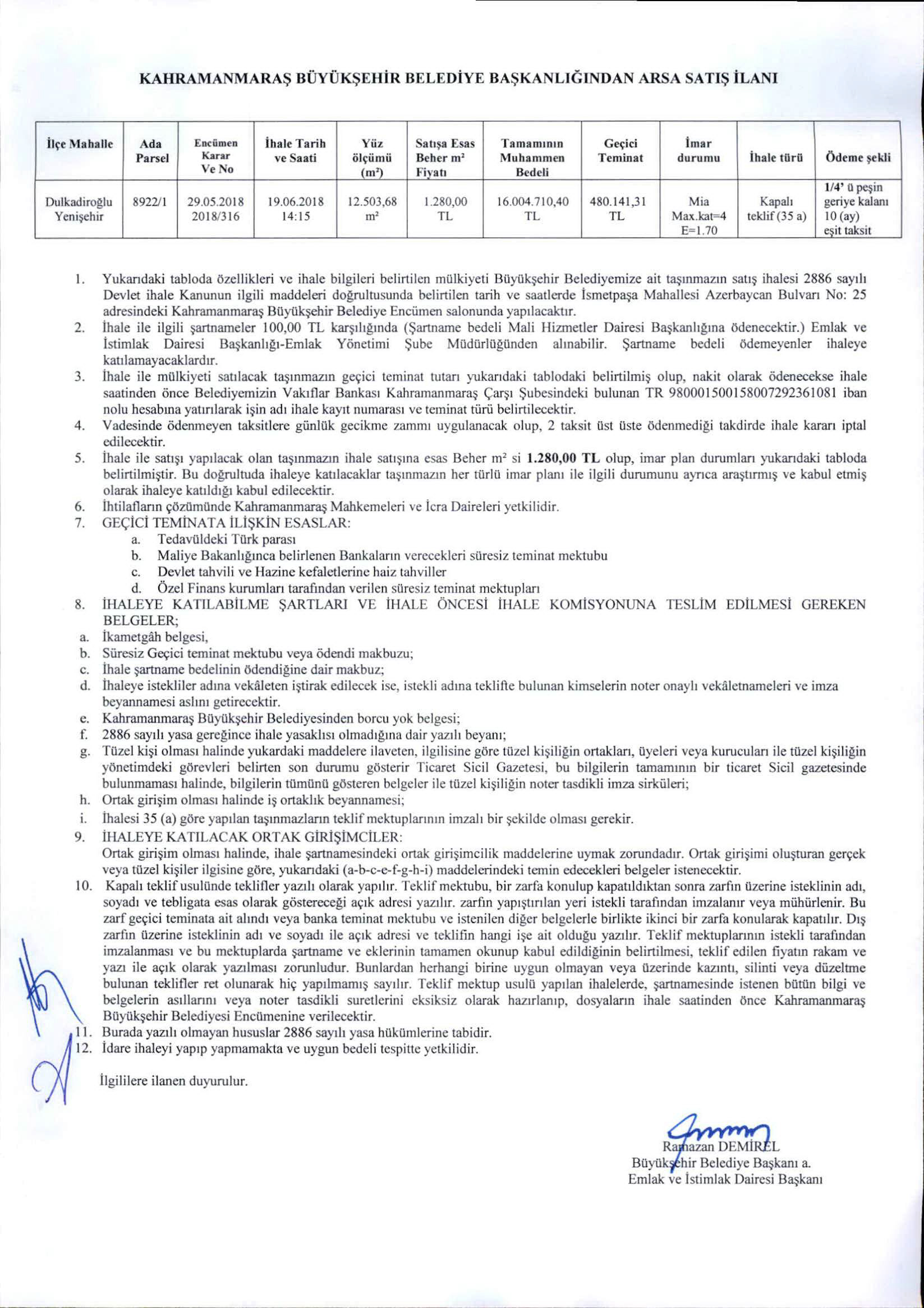 KAHRAMANMARAŞ BÜYÜKŞEHİR BELEDİYESİ İHALE SALONU