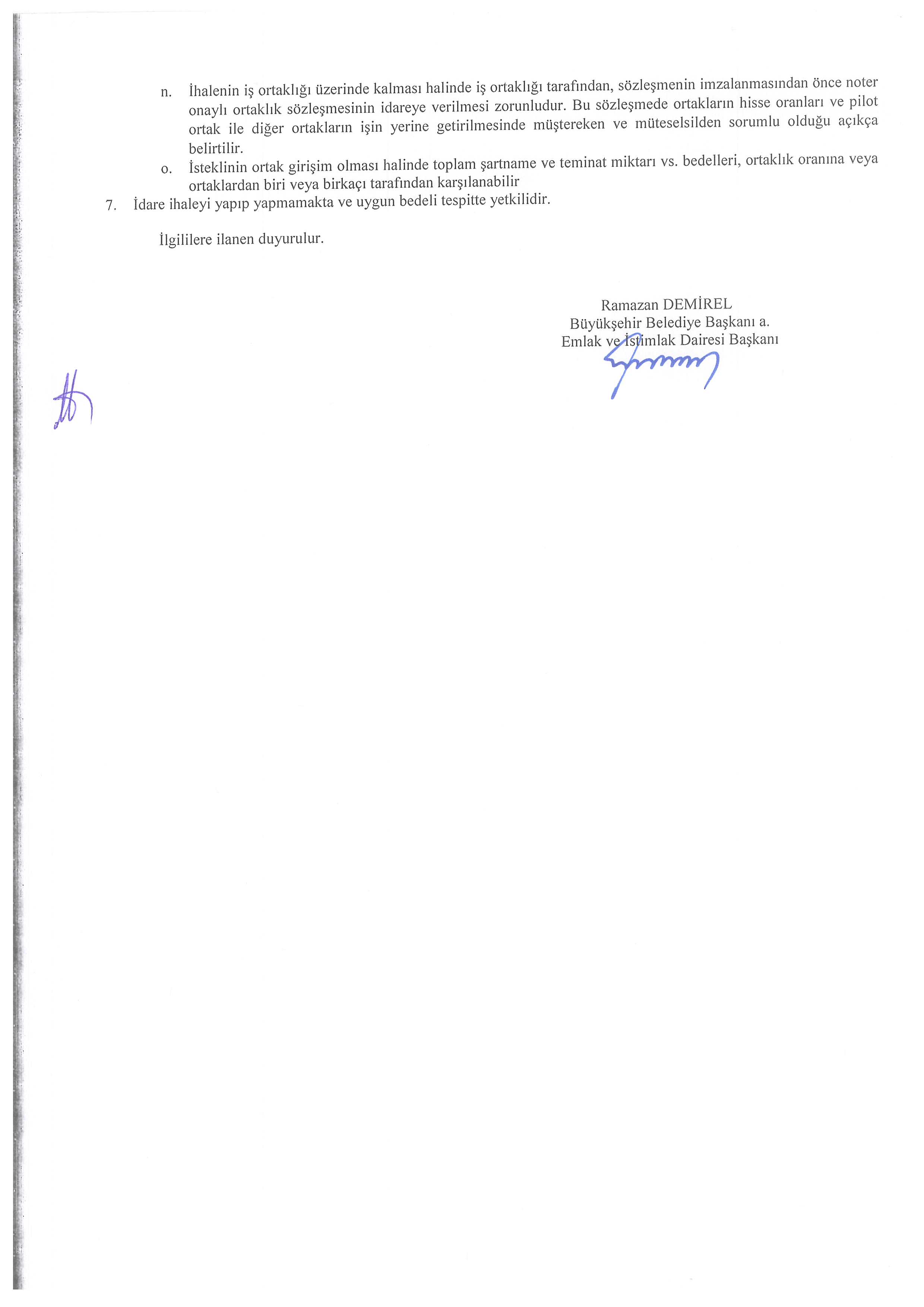 İhalenin yapılacağı adres: