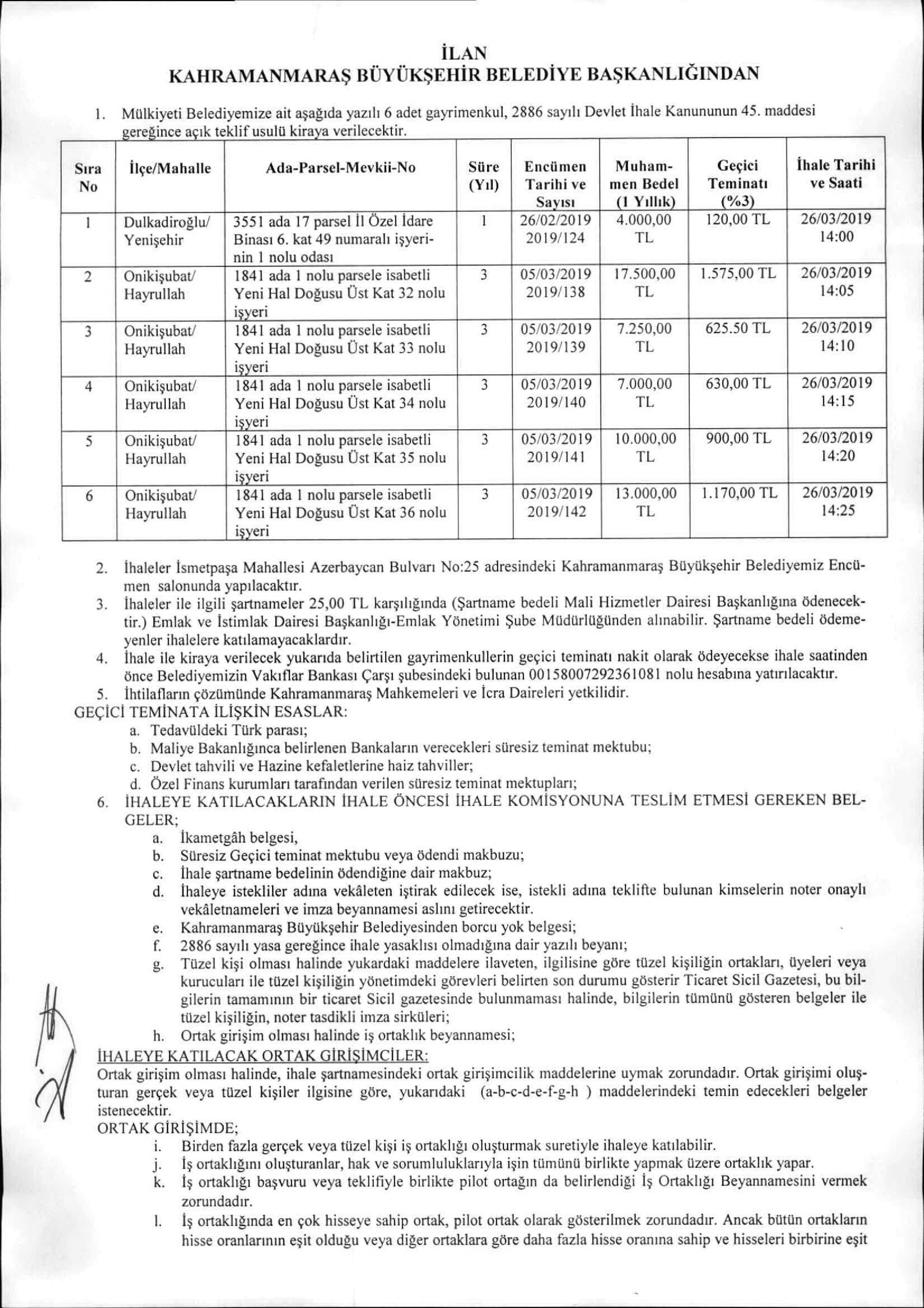 KAHRAMANMARAŞ BÜYÜKŞEHİR BELEDİYESİ İHALE SALONU