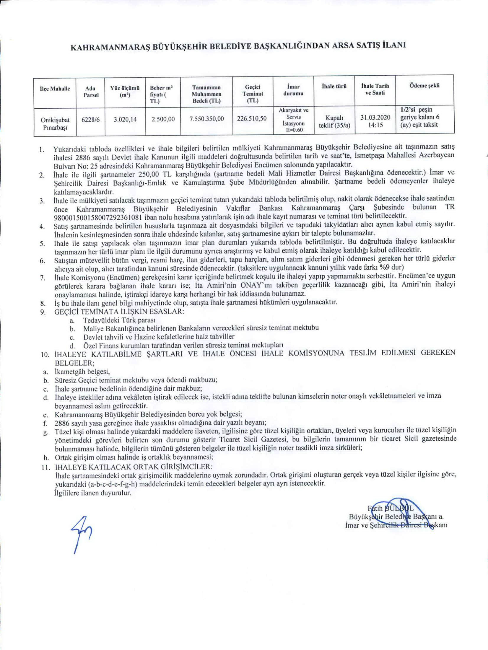 KAHRAMANMARAŞ BÜYÜKŞEHİR BELEDİYESİ İHALE SALONU
