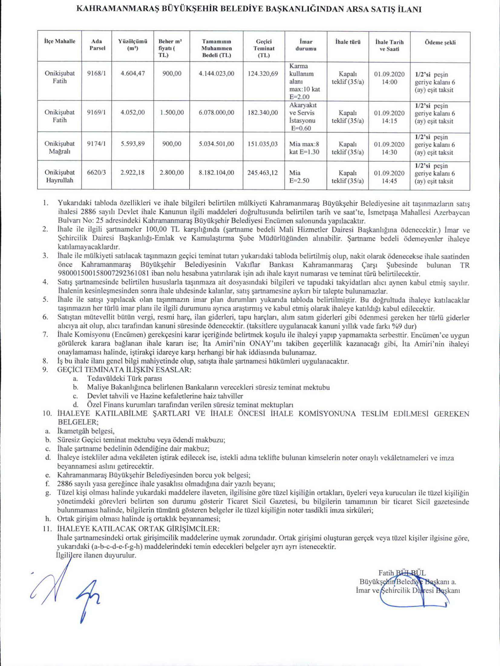 Kahramanmaraş Büyükşehir Belediye Başkanlığından Arsa Satış İlanı