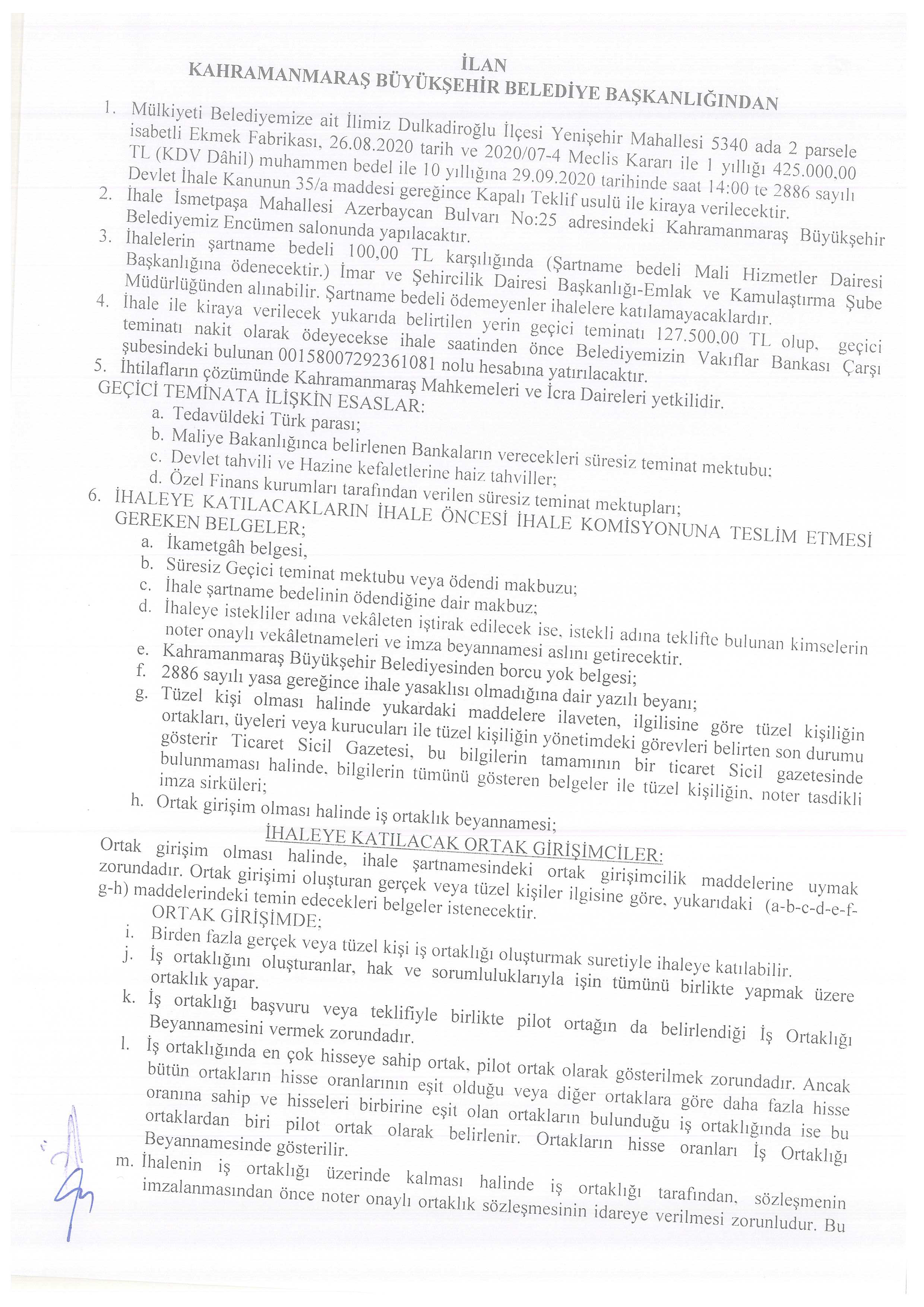 KAHRAMANMARAŞ BÜYÜKŞEHİR BELEDİYESİ İHALE SALONU