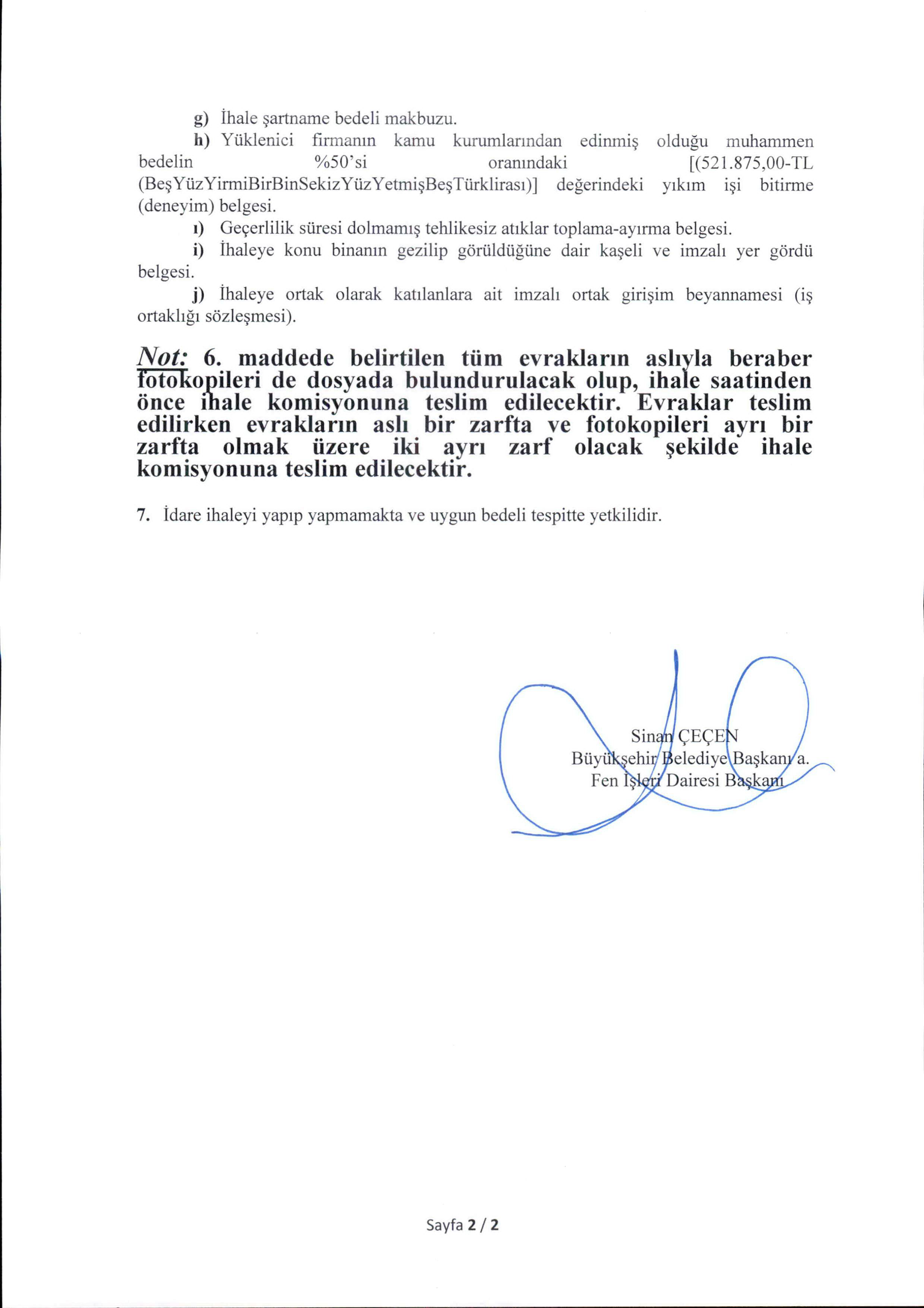İhalenin yapılacağı adres:
