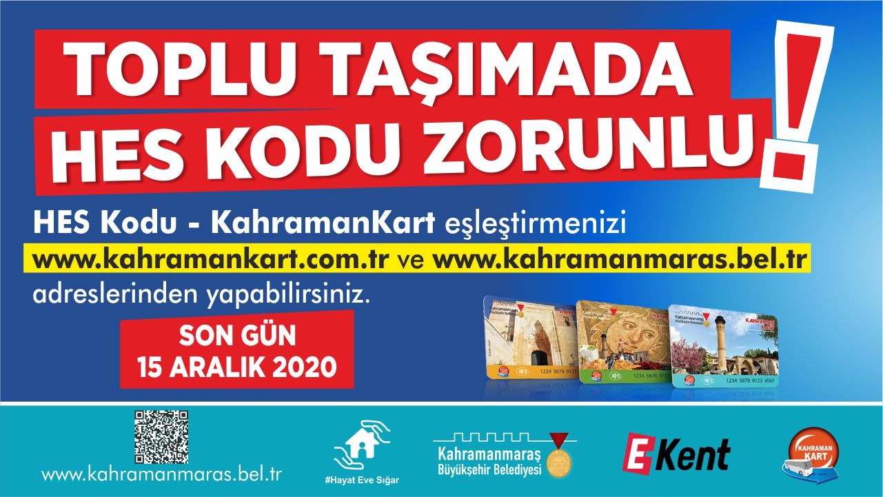 İç İşleri Bakanlığı genelgesi gereğince toplu taşımada HES Kodu uygulamasına geçiliyor. Vatandaşlar, Kahramankart – HES Kodu eşleştirmesini internet üzerinden kolay bir şekilde gerçekleştirebiliyor.