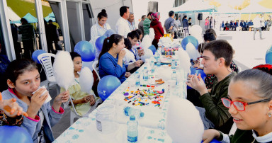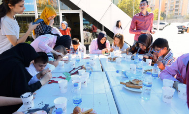 Büyükşehir Belediyesi bünyesinde oluşturulan Gönüllü Gençlik Hareketi, 6. Kitap ve Kültür Fuarı’nda çocuklar için çalışıyor.