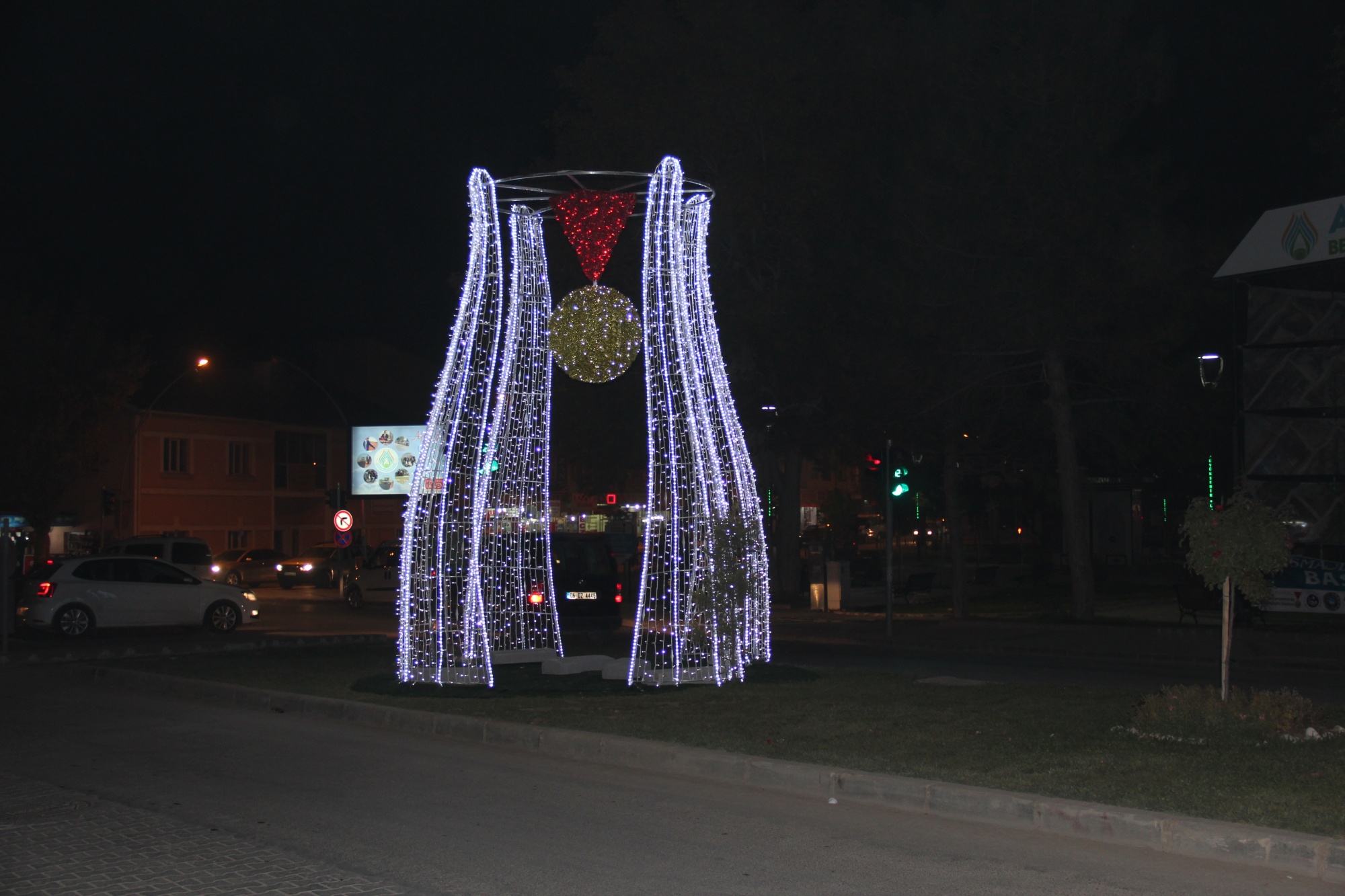 Afşin Meydanı’nda kavşakta yer alan İstiklal Madalyalı dekoratif led süslemesi