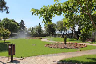 Ayşe ve Erdoğan Küçükarık Taziye evi Bahçesinde toprak tesviye, otomatik sulama sistemi, bordür parke döşeme, çim ekimi, bitkilendirme ve kent mobilyaları kurulumu tamamlanmıştır.