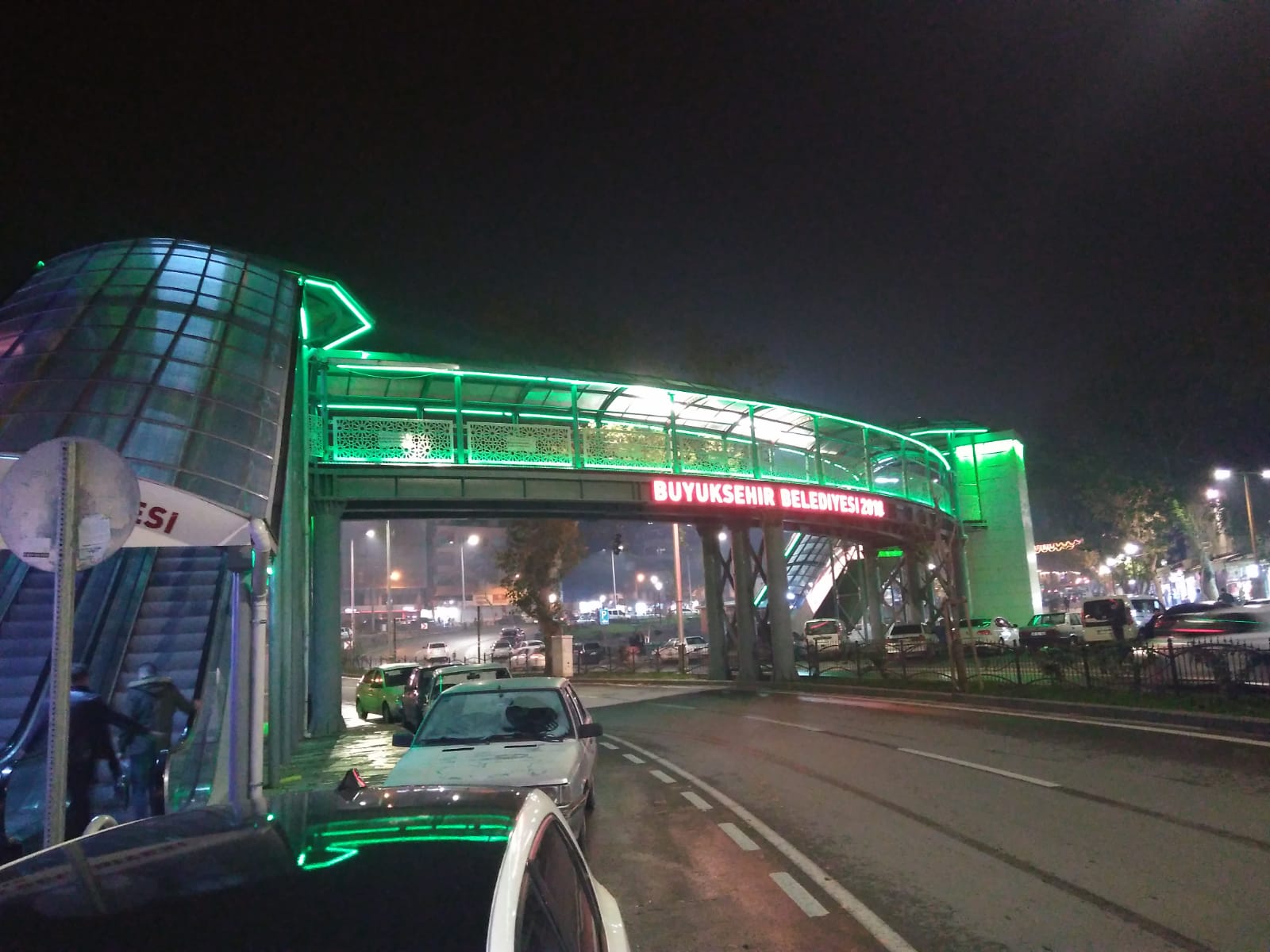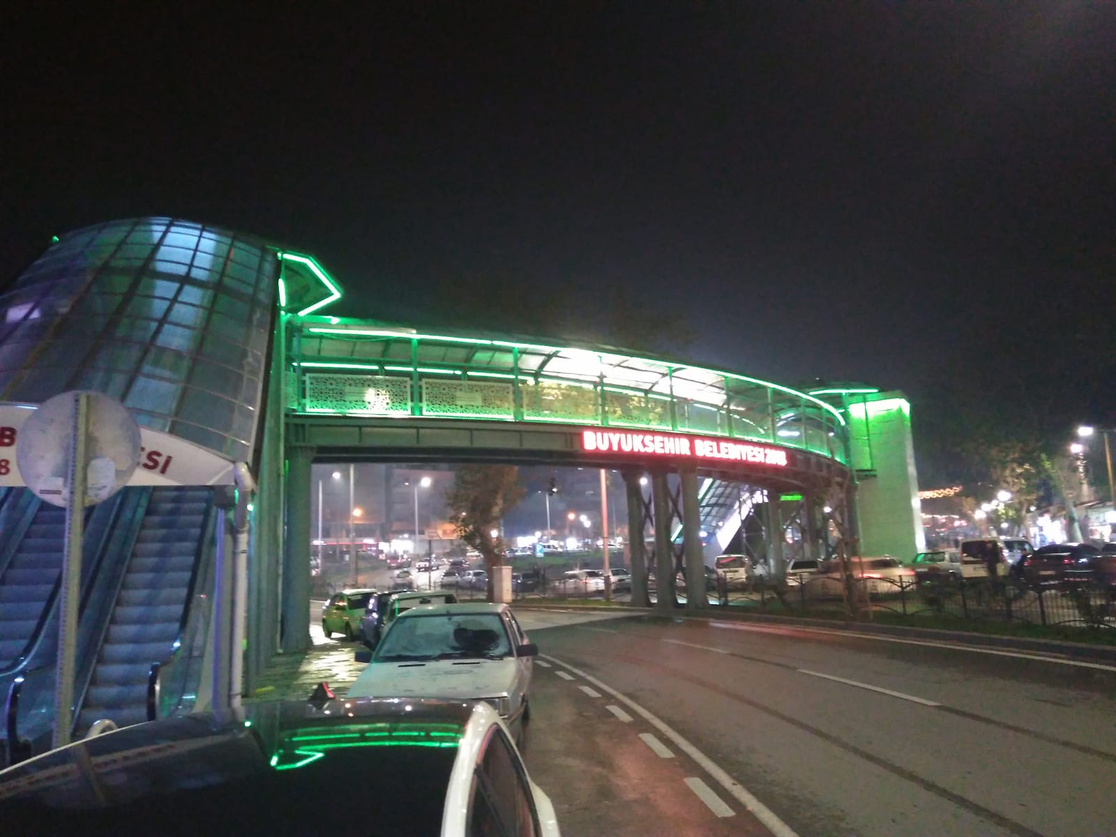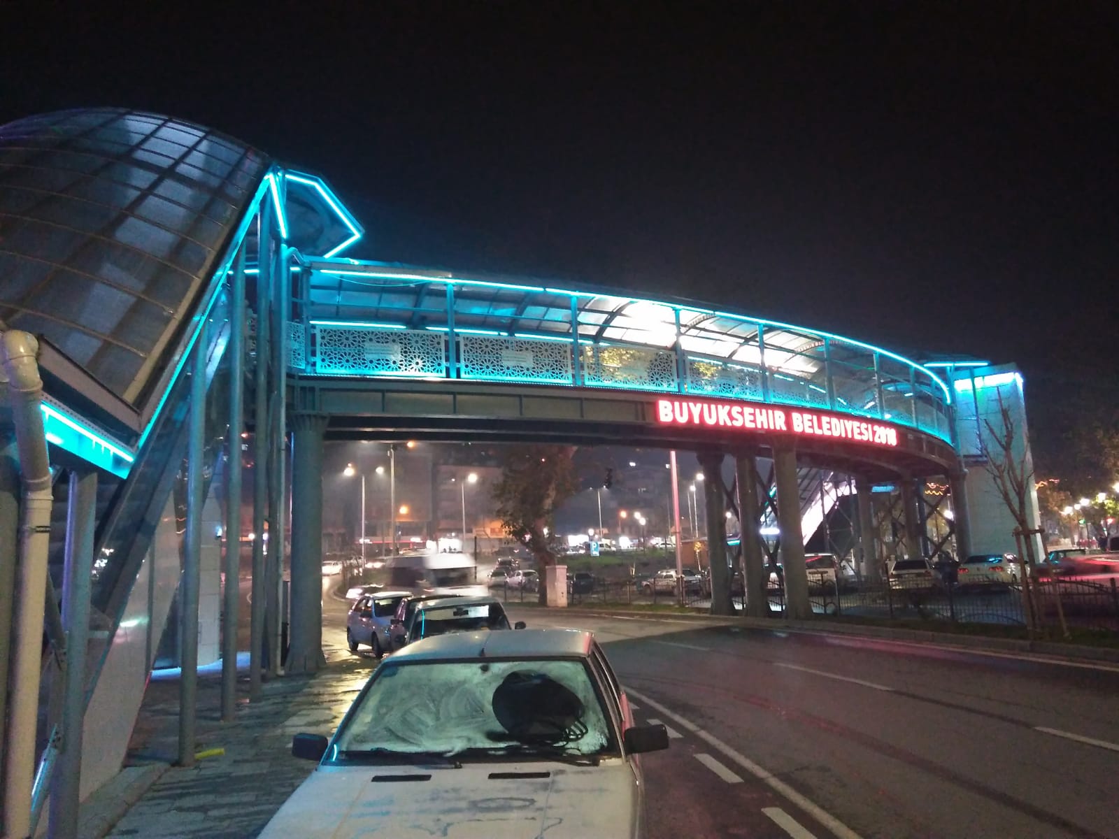 4 Adet yürüyen merdivenli kapalı tip ayrıca 2 adet engelli asansörlü,gece dekoratif aydınlatmalı,kahramankart entegreli asansör çelik yaya üst projesidir.