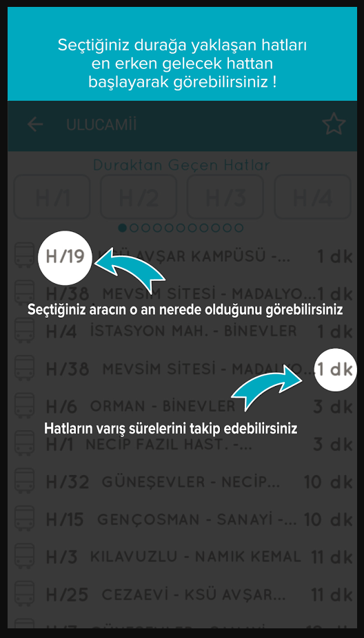 Toplu Taşımada Mobil Uygulama Hizmet vermektedir.