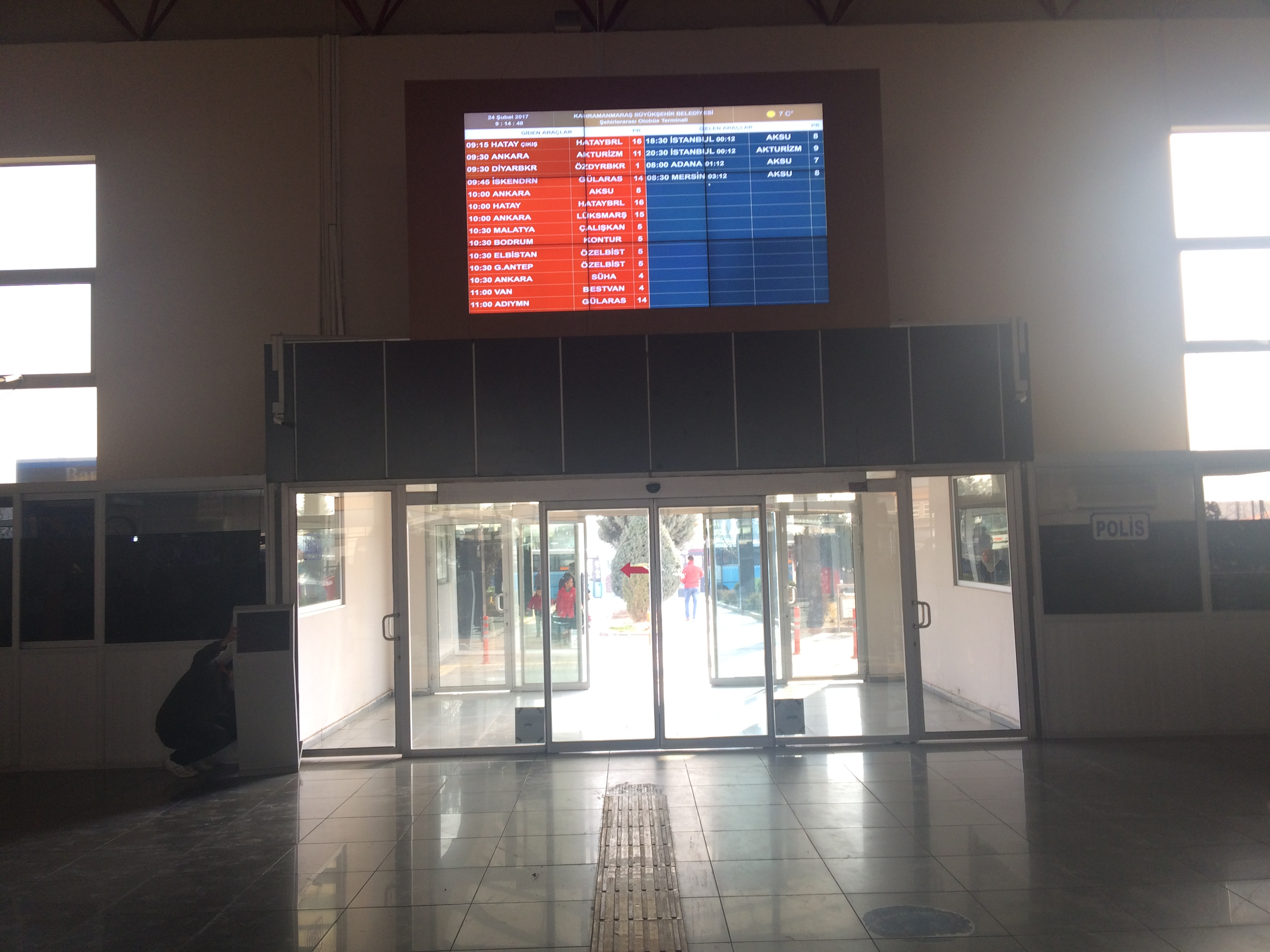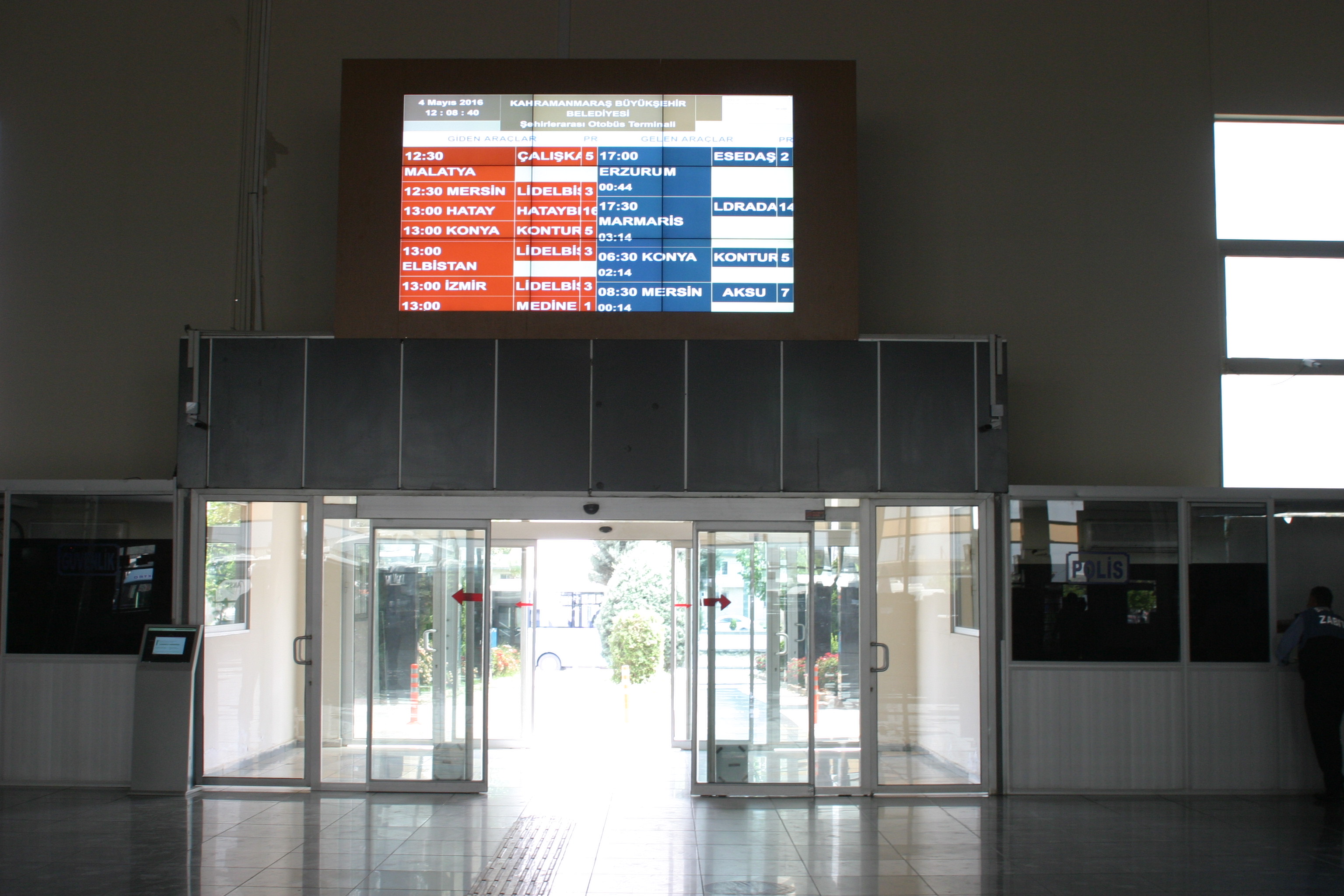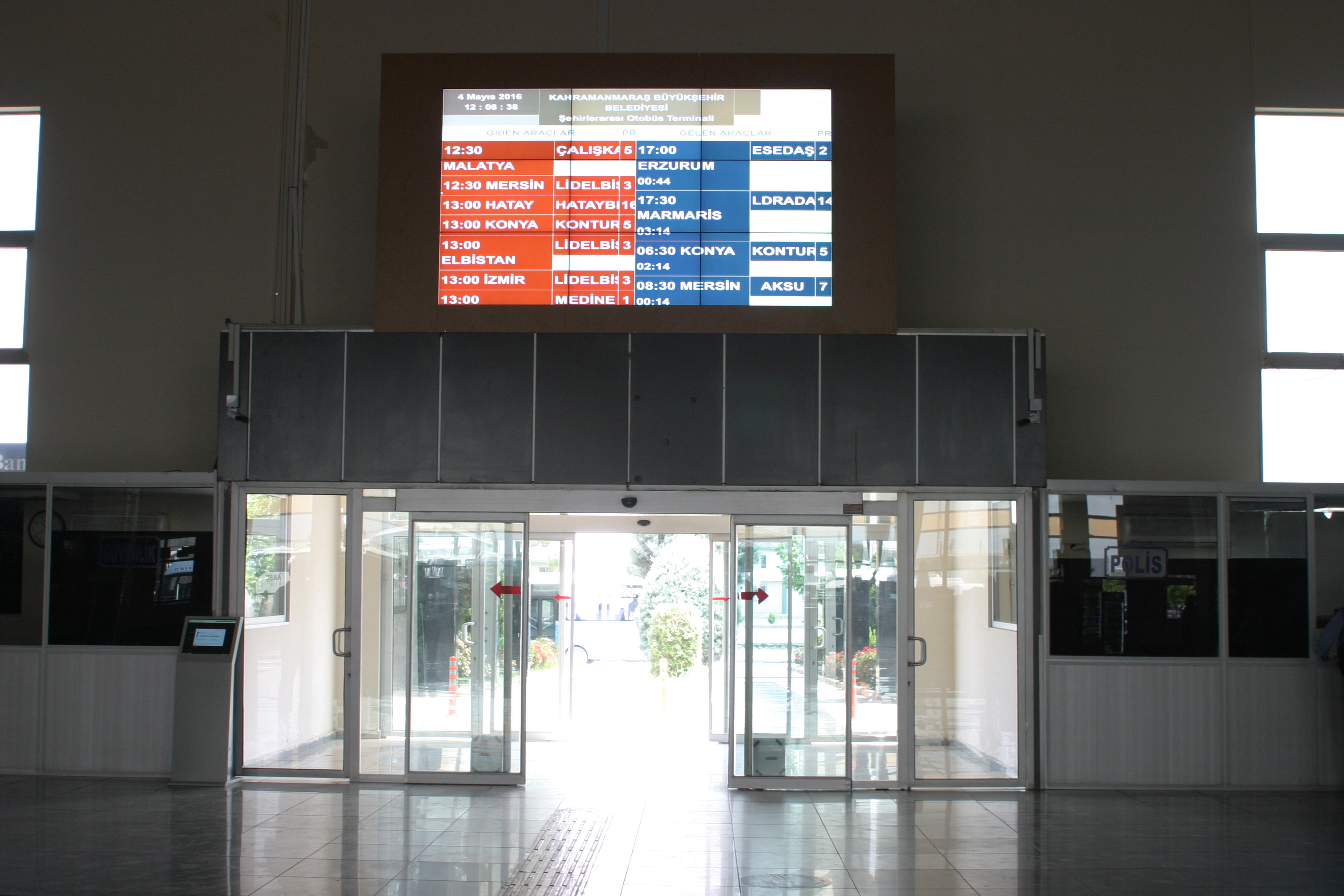 Kahramanmaraş Şehirlerarası Otobüs terminalimizde otobüs firmalarına ve şehirlere göre, gelen ve giden otobüs bilgileri yayınlanarak vatandaşlara kolaylık sağlanmıştır.