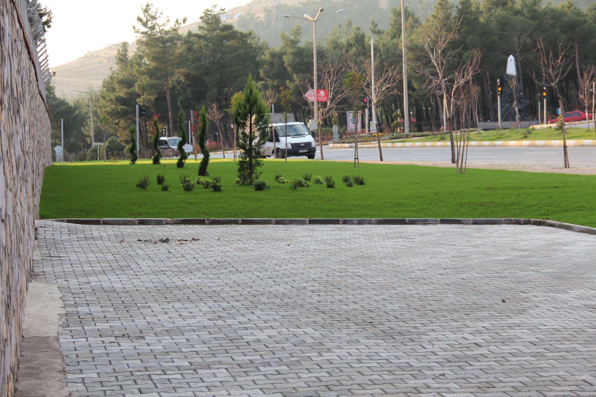 Alan tesviyesi, toprak tesviyesi, çim ekimi, 11 adet ağaç ve 366 adet çalı türü bodur bitki dikimi yapıldı